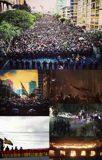 الاحتجاجات البوليفية 2019 هي هي سلسلة من احتجاجات أمريكا اللاتينية التي اندلعت في أكتوبر 2019 عقب إعادة انتخاب الرئيس إيفو مورالس لفترة رئاسية رابعة. استمرت 3 أسابيع حتى أعلن الرئيس إيفو مورالس استقالته من منصبه في 10 نوفمبر 2019.[3] وفي 13 نوفمبر 2019 أعلنت جانين آنييز زعيمة المعارضة في بوليفيا، نفسها رئيسة مؤقتة للبلاد.[4]