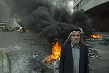 - 3 تشرين الثاني: اغلق محتجون معظم شوارع بغداد مع تصاعد شدة الاحتجاجات ودخولها اليوم العاشر على التوالي،[408] كما أقدم بعض المتظاهرين على حرق مبنى القنصلية الإيرانية في مدينة كربلاء[409][410]، وسقط ثلاثة شبان قتلى لحظة إضرام النار في القنصلية، بعد تعرضهم لإطلاق رصاص حي من داخل القنصلية وخارجها لحظة احتراقها،[411] واتجهت سيارات اسعاف نحو مبنى القنصلية،[412] وتعتبر هذه هي القنصلية الإيرانية الثانية التي تتعرض للحرق في العراق، بعد قنصلية البصرة خلال تظاهرات العام الماضي[413]، ورفع المتظاهرين العلم العراقي فوق أسوار مبنى القنصلية.[414][415] دخل اعتصام الخضر في المثنى يومهُ الخامس،[416] وتوافد أعداد المُعتصمين في البصرة بعد حضور مواطنين من الأقضية والنواحي،[417] وأغلق متظاهرون غاضبون في محافظة ميسان الطرق المؤدية إلى الحقول النفطية في المشرح،[418] وشارك العشرات من كوادر تربية الديوانية بالاعتصامات،[419] وقطع متظاهرون شوارع مركز محافظة واسط تضامناً مع العصيان المدني،[420] وأفاد صحفي من محافظة ميسان بأن اغلب طلبة المدارس والعديد من الكليات متضامنين مع الاحتجاجات العامة عبر التظاهر في ساحات الاعتصام،[421] وأفاد بوجود تضامن شعبي واسع مع العصيان المدني وقطع الطرق المؤدية لمقار الشركات النفطية،[422] وشارك أطباء في اعتصام الساعة لدعم الاحتجاجات في الديوانية،[423] وأعلنت مديرية التسجيل العقاري في الديوانية الإضراب عن الدوام،[424] ونظم طلبة جامعة كربلاء، مسيرة حاشدة ويقطعون الطريق المؤدي إلى ساحة التربية،[425] وتوافد آلاف المعتصمين إلى ساحة الحبوبي وسط الناصرية،[426] وتصاعد أعداد المعتصمين في الناصرية بشكل مُستمر،[427] والمئات من أبناء الديوانية واصلوا اعتصامهم في ساحة الساعة،[428] وازدادت أعداد التربويين المشاركيين في اعتصام السماوة،[429] وقَطعَ متظاهرون الطريق الخارجي لـقضاء أبي الخصيب جنوب البصرة،[430] واستمر الاعتصام في مدخل حقل مجنون النفطي،[431] وشهدت محافظة ذي قار إضراباً بكامل مفاصلها،[432] ودخل متظاهرون مبنى قائممقامية القرنة،[433] وعطلت مصارف ذي دار الدوام تضامناً مع المعتصمين،[434] وغادر المتظاهرون مبنى قائممقامية القرنة،[435] وأكد طلبة جامعات ومدارس البصرة استمرارهم بالمظاهرات والاعتصامات والإضراب عن الدوام لحين تنفيذ المطالب،[436] واتفاق بين متظاهرين ومسؤوليين وقوات أمنية في المثنى على إغلاق مقار الأحزاب،[437] ونظم أهالي الدغارة في الديوانية تظاهرة أمام البلدية لتغيير مديرها،[438] وشاركت تنسيقية المهن الصحية في مفرزة طبية لدعم المعتصمين في الناصرية،[439] وحمل المعتصمون من طلبة ذي قار علماً عراقياً بطول 50 متراً.[440]