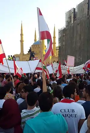 ![]() محتجون في ساحة الشهداء بتاريخ 29 أغسطس في بيروت | ||||||
