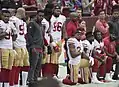 الاحتجاجات خلال النشيد الأمريكي هي احتجاجات ظهرت لأول مرة في أغسطس 2016، عندما احتج لاعب فريق سان فرانسيسكو 49 لكرة القدم الأمريكية كولين كايبرنيك خلال الدوري الوطني لكرة القدم الأمريكية،[5] ضد وحشية شرطة بلاده وعنصريتها مع الأمريكيين السود،[2][6][7][8][9] من خلال الركوع على ركبة واحدة خلال النشيد الوطني الأمريكي.[4] وطوال المواسم التالية، انخرط أعضاء من اتحاد كرة القدم الأميركية وفرق رياضية أخرى في احتجاجات صامتة مماثلة.
