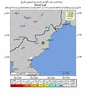 |CitationClass=تم تجاهله (مساعدة) - "North Korea conducts 'fifth and biggest nuclear test'". BBCNews. 9 September 2016. مؤرشف من الأصل في 28 أبريل 2019. الوسيط