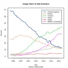|CitationClass=تم تجاهله (مساعدة) - "Browser Market Share Worldwide - StatCounter Global Stats". StatCounter Global Stats. مؤرشف من الأصل في 4 يونيو 2019. الوسيط