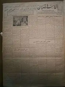 الصفحة الأولى من جريدة الاستقلال التونسية بتاريخ 17 فيفري 1956