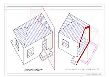 - تقنيات، وذلك باستخدام الإسقاطات المتعامدة (أو طريقة مونج)