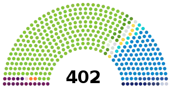 خصص لمجلس النواب 88 مقعدا ل 26 دائرة انتخابية متعددة الأعضاء، ومنح حق التصويت الكتلوي الجزئي للمقاعد 314 المتبقية بنظام الجولة الأولى من جولتين في الدوائر ذات العضو الواحد. وبدلا من التصويت للأحزاب سيصوت الناخبون للمرشحين الأفراد. وفي المقاطعات التي تنتخب من مقعد إلى أربعة مقاعد يمكن للناخبين التصويت لمرشحين أقل بواحد من المقاعد التي يتعين شغلها؛ في المقاطعات التي لديها من خمس إلى ثمانية مقاعد، سيكون التصويت أقل بإثنين؛ و3 أصوات أقل في الدوائر الانتخابية متعددة الأعضاء التي تنتخب أكثر من ثمانية مقاعد. ويعتبر المرشحين ناجحين إذا نالوا أكثر عدد من الأصوات الدائرة الانتخابية. ويتحدد العدد الإجمالي للمقاعد حسب عدد السكان، أي مقعد واحد لكل 50,000 نسمة. ولكل دائرة انتخابية متعددة الأعضاء عدد ثابت من المقاعد: 8 في مدريد و5 في برشلونة وبالما دي مايوركا و4 في إشبيلية و3 في أليكانتي والمرية وباداخوز وبورغوس وكاديز-سان فيرناندو وكارتاخينا-توتانا وقرطبة ولا كورونيا وغرناطة وخاين وشريش - شلوقة - أركوس ولوغو ومالقة ومرسية وأوفييدو وبنبلونة وسانتاندر وطراغونة وتينيريفي وبلنسية وبلد الوليد وسرقسطة. وينص القانون أيضا على إجراء انتخابات تكميلية لملء المقاعد الشاغرة في جميع أنحاء السلطة التشريعية.[3][6]