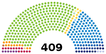 بالنسبة لمجلس النواب فقد خصص 90 مقعدا ل 28 دائرة انتخابية متعددة الأعضاء، ومنح حق التصويت الكتلوي الجزئي للمقاعد 314 المتبقية بنظام الجولة الأولى من جولتين في الدوائر ذات العضو الواحد. وبدلا من التصويت للأحزاب سيصوت الناخبون للمرشحين الأفراد. وفي المقاطعات التي تنتخب من مقعد إلى أربعة مقاعد يمكن للناخبين التصويت لمرشحين أقل بواحد من المقاعد التي يتعين شغلها؛ في المقاطعات التي لديها من خمس إلى ثمانية مقاعد، سيكون التصويت أقل بإثنين؛ وفي المقاطعات التي لديها من ثمانية إلى عشر مقاعد، سيكون التصويت أقل بثلاث؛ و4 أصوات أقل في الدوائر الانتخابية متعددة الأعضاء التي تنتخب من عشرة مقاعد فأكثر؛ واعتبر المرشحون الذين حصلوا على أغلبية الأصوات فائزون من الجولة الأولى؛ وإذا لم يستوف أي مرشح تلك النسبة تعقد جولة ثانية يكون المرشح الفائز الذي ينال أكثرية الأصوات. وفي المقاطعات ذات العضو الواحد فإن المرشحون كانوا يتنافسون دون معارضة. وفي الدوائر متعددة الأعضاء فإن كان عدد المرشحين متساوٍ أو أقل من عدد المقاعد المراد شغلها فسيعلن عن المرشحين تلقائياً دون انتخابات. ويتحدد العدد الإجمالي للمقاعد حسب عدد السكان، أي مقعد واحد لكل 50,000 نسمة. والتصويت اجباري وعلى أساس حق الاقتراع النزيه حيث يحق التصويت للذكور فوق 25 عاما وأن يكون قد أقام سنتين على الأقل في البلدية التي يحق له التصويت فيها. تم إعفاء الذين هم فوق سن السبعين وقضاة الدرجة الأولى وكتاب العدل العامين ورجال الدين من التصويت. وفي الوقت نفسه، فإن للذكور العلمانيين الذين تزيد أعمارهم عن 25 سنة ويتمتعون بكامل الحقوق المدنية فهم مؤهلون للكونغرس إذا استجابوا لأحد هذه الشروط: (1) شغلوا من قبل منصب نائب؛ (2) رشحه على الأقل عضوان في مجلس الشيوخ أو أعضاء سابقون في مجلس الشيوخ أو نائبين أو نائبين سابقين عن نفس المقاطعة أو ثلاثة نواب إقليميين أو سابقين داخل الدائرة الانتخابية؛ (3) رشحه ما لا يقل عن 0.05 ٪ من الناخبين المسجلين في المنطقة.[3]