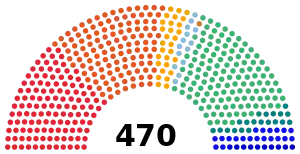 الانقسامات الحزبية في افتتاح الكورتيس، وبعد منح المقاعد بين الائتلافات::[11]