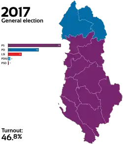 - Albanian Socialists to get parliamentary majority, partial vote count shows Reuters, 26 June 2017 نسخة محفوظة 06 يناير 2018 على موقع واي باك مشين.