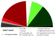 | أحزاب | مقاعد | % | أحزاب | مقاعد | % | أحزاب | مقاعد | % | أحزاب | مقاعد | % |