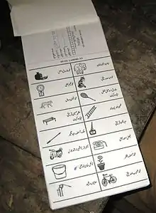 | الحزب الوطنى عوامى | ![]() يميناسفنديار | اشتراكية، ديمقراطية اشتراكية ، موالى بشتون.[15] |