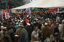 وفى 21 ديسمبر استهدفت أفتاب أحمد شيرباو ٬ زعيم حزب الشعب الباكستانى (س) و المنشق من حزب الشعب الباكستانى ٬ في هجوم على تجمع سياسى ومقتل 57 شخص.