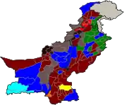 | مصادر: اللجنة الانتخابية الباكستانية[31] وأرشيف الانتخابات لآدم كار[32] | |||||||