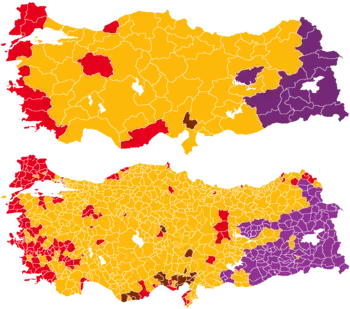 | حزب الشعب الجمهوري | 070 518 11 | 24.95% | 132 |