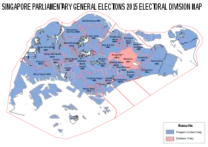 | بالأحمر: ولايات جاء فيها حزب العمل الشعبي في المركز الأول حسب الأصوات بالأزرق: ولايات جاء فيها حزب العمال السنغافوري في المركز الأول حسب الأصوات | |||||||||||||||||||||||||||||||||||||||||||||||||||||||||||||||||||