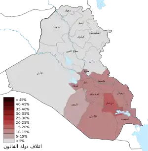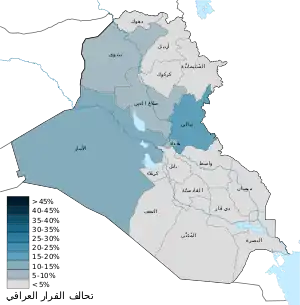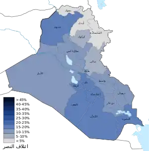 - "مفوضية الانتخابات العراقية: نسبة المشاركة 32%". مؤرشف من الأصل في 13 مايو 2018. اطلع عليه بتاريخ 12 مايو 2018. الوسيط