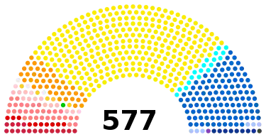 | الجمهورية إلى الأمام! | 6٬391٬269 | 28.21% | 7٬826٬432 | 43.06% | 308 / 577 | |||