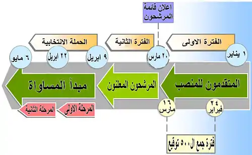 - 31 مارس 2012 : نشرت الجريدة الرسمية 500 توقيع لكل مرشح بأسماء الأشخاص الذين أعطوا أصواتهم للمرشحون.[15]