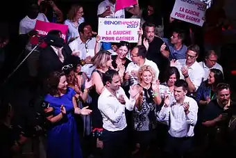 جرت الجولة الأولى للانتخابات التمهيدية للحزب الاشتراكي يوم 22 يناير 2017، وحلّ فيها وزير التعليم السابق بونوا أمون أولاً بشكل مفاجئ بنسبة 36.30 في المائة وبفارق خمس نقاط عن منافسه رئيس الوزراء السابق، مانويل فالس.[8] وفي الجولة الثانية التي أقيمت يوم 29 يناير، حصل أمون على من 58% من الأصوات منتصرا على فالس، وبذلك أصبح أمون مرشح الحزب الاشتراكيي في الانتخابات.[9]