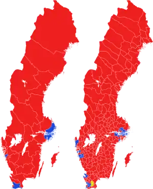 Red – Social Democratic, Blue – Moderate, Yellow – Sweden Democrats | ||||||||||||||||||||||||||||||||||||||||||||||||||||||||||||||||||||||||||||||||||||||||||||||||||||||||||||||||||||||||||||||||||||||||||||||||||||||||