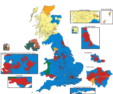 | خريطة توضح نتائج الانتخابات وفق الحزب الذي ينتمي إليه العضو الفائز في كل دائرة انتخابية. | |||||||||||||||||||||||||||||||||||||||||||||||||||||||||||||||||||||||||||||||||||||||||||||||||||||||
