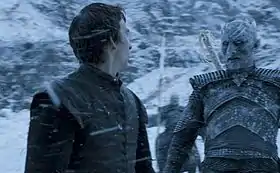 ![]() بران ستارك يقابل ملك المشاة البيض في إحدى رؤاه. | ||||