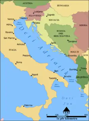 البحر الأدرياتيكي أو بحر البَنَادِقِيّين[1] أو بحر البَنَادِقَة[1] (بالإيطالية: Mare Adriatico، بالكرواتية: Jadransko more أو Jadran) هو أحد فروع البحر المتوسط الذي يفصل شبه الجزيرة الإيطالية عن شبه جزيرة البلقان وسلسة جبال الأبينيني عن سلسلة جبال الألب الدينارية. من الغرب والشمال تحده إيطاليا ومن الجهة الشرقية تطل عليه من الشمال للجنوب سلوفينيا وكرواتيا والبوسنة والهرسك وصربيا ومونتنيغرو وألبانيا. سمي بذلك نسبة إلى مدينة أدريا أو هدريا الواقعة شماله في الأراضي الإيطالية.