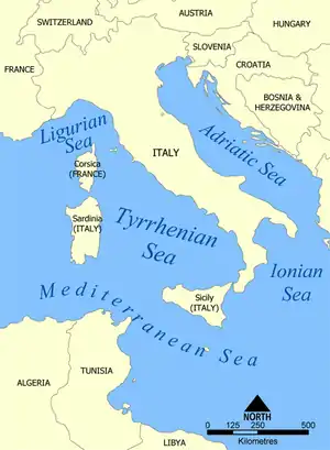 |CitationClass=تم تجاهله (مساعدة) - "Tyrrhenian Sea | sea, Mediterranean Sea". Encyclopedia Britannica (باللغة الإنجليزية). مؤرشف من الأصل في 11 يوليو 2018. اطلع عليه بتاريخ 18 يوليو 2017. الوسيط