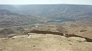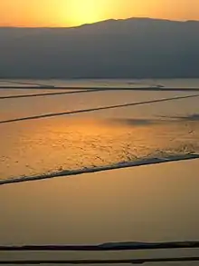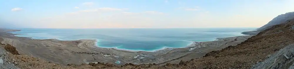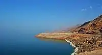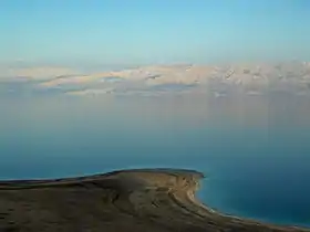 ![]() مشهد للبحر الميت ومن خلفه الجبال على الجانب الأردني | |