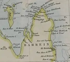 |CitationClass=تم تجاهله (مساعدة) - "'Persian Gulf Gazetteer Part II, Geographical and Descriptive Materials, Section II Western Side of the Gulf' [49v] (101/286)". Qatar Digital Library. مؤرشف من الأصل في 07 يوليو 2018. اطلع عليه بتاريخ 23 يوليو 2015. الوسيط