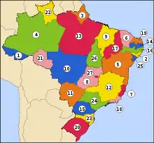 البَرَازِيل الاِسم الرسمِيّ جُمْهُورِيَّة البَرَازِيل الاتِّحادِيَّة[21][22] هي أكبر دولة في كل من أمريكا الجنوبية و أمريكا اللاتينية. وثالث أكبر بلد في الأمريكتين وخامس أكبر دولة في العالم، سواء من حيث المساحة الجغرافية أو عدد السكان.[23] وهي أكبر البلدان الناطقة بالبرتغالية في العالم، والوحيدة في الأمريكتين.[24]