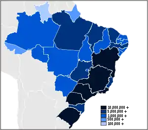 |CitationClass=تم تجاهله (مساعدة) - IBGE, População residente, por sexo e situação do domicílio, segundo a religião, Censo Demográfico 2000. Acessado em 13 de dezembro de 2007 نسخة محفوظة 17 فبراير 2012 على موقع واي باك مشين.
