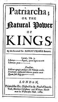 البطريركية أو القوة الطبيعية للملوك هو كتاب صدرَ عام 1680 للفيلسوف الإنجليزي روبرت فيلمر، يدافع عن الحق الإلهي للملوك على أساس أن سلطة جميع الدول الحديثة مستمدة من البطاركة الكتابيين (الذين رآهم ورثة آدم)، التاريخ والمنطق. في الوقت نفسه، انتقد نظريات متنافسة تدعي أن أساس الدولة يجب أن يكون موافقة المحكوم والعقد الاجتماعي.[1]