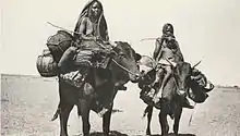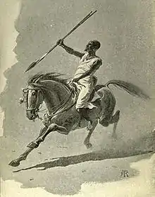 ![]() صورة أُلتُقطت عام 1910 لرجل من البقارة على صهوة جواده | |
