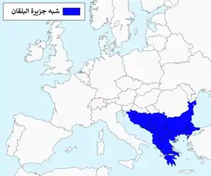 ![]() الجزء الأزرق من الخريطة هو "شبه جزيرة البلقان". | |