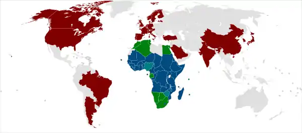 ملحوظة: كل البلدان المنضمة للإتحاد الأفريقي بما فيها موريتانيا وبإستثناء ما يسمى ب الجمهورية العربية الصحراوية الديمقراطية في تندوف مؤهلة للحصول على استحقاقات المصرف الاستئماني النيجيري.