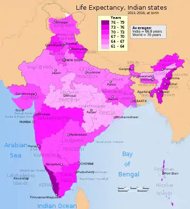 |CitationClass=تم تجاهله (مساعدة) - (a) Ponnapalli et al. (2013), Aging and the Demographic Transition in India and Its States: A Comparative Perspective, International Journal of Asian Social Science, 3(1), pp. 171–193; (b) The Future Population of India Population Research Bureau and Population Fund of India. نسخة محفوظة 8 نوفمبر 2020 على موقع واي باك مشين.