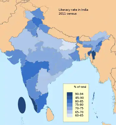 |CitationClass=تم تجاهله (مساعدة) - Ranking of states and union territories by literacy rate: 2011 Census of India Report (2013) نسخة محفوظة 26 نوفمبر 2020 على موقع واي باك مشين.