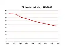 |CitationClass=تم تجاهله (مساعدة) - "Birth Rate, Death Rate, Infant Mortality Rate and Total Fertility Rate: India and States". National Commission on Population, Govt of India. 2010. مؤرشف من الأصل في 19 يونيو 2009. اطلع عليه بتاريخ 17 يناير 2012. الوسيط