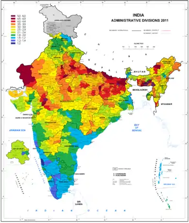 |CitationClass=تم تجاهله (مساعدة) - Table in Chapter 3 Vital Statistics of India, Estimates of Fertility Indicators, Census of India, Government of India (2013), page 48 نسخة محفوظة 5 أغسطس 2020 على موقع واي باك مشين.