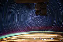 Star trails photographed in earth orbit from the International Space Station