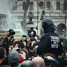 يعتبر نشر أو مشاركة صورة لشرطي عضو في القوات المسلحة أو أحد أفراد الأجهزة الأمنية جريمة بموجب قانون مكافحة الإرهاب لعام 2008, وذلك لا يشمل مسؤولي شرطة دعم المجتمع , وذلك من الممكن أن يفيد شخص يعد لارتكاب عمل إرهابي, و بموجب المادة58A من قانون الإرهاب لعام 2000فإن هناك دفاع بالعمل مع عذر مقبول , إلا أن عبء الإثبات يقع على الدفاع, و استشهد مسؤول من شرطة دعم المجتمع بالمادة 44 من قانون الإرهاب لعام 2000 لمنع فرد من الشعب من تصويره, و تنص المادة 44 على صلاحية الوقف والتفتيش , و مع ذلك, استبعدت المحكمة الأوروبية لحقوق الإنسان صلاحيات الوقف و التفتيش المعتمدة بموجب المادة 44 على أنها غير قانونية في شهر يناير عام 2010.