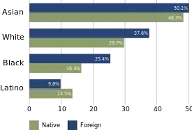 المكونات الاجتماعية للمجموعات كلاهما الأصلية وتلك التي ولدت في الخارج، متعلقة بأولئك الحاصلين على درجة البكالوريوس والدرجات الأعلى.