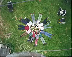 مجموعة من مشاركين يعانون من إعاقات جسدية بعد الانتهاء من التدريب في عام 1996.