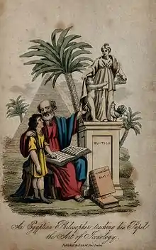 أما المدارس فكانت «بر عنخ» أو بيت الحياة هو اسم أول مدرسة ومكتبة في تاريخ الإنسانية. وكانت جامعة لتعلم العلوم الدينية وعلوم الطب والرياضيات والفلك والجغرافيا وأكاديمية للفنون. وكان هناك مبنى خاص للتعليم الأساسي لتعليم الكتابة والقراءة عرف باسم «عت سبا» أو مكان العلم أو المدرسة، وكان يبنى إما مستقلاً أو ملحق بمعبد، وكان يلحق بها تلاميذ من فئات مختلفة من الشعب في سن مبكرة ما بين خمس وعشر سنوات. وخلال العصر البطلمي مع نشأة مدرسة ومكتبة الإسكندرية، كانت مصر مقصداً لتلقي العلوم والتعليم على أيدي علماء مصريين ذاع صيتهم خارج حدود مصر، أضافوا للعالم في جميع العلوم والفنون والآداب وشتى أنواع المعرفة.[1][12][13]:7:14 وكان بالإسكندرية جامعة يعود تاريخها إلى عام 300 ق.م، كانت مقراً لمشاهير العلماء مثل أرشميدس وإقليدس وكانت تلقى بها المحاضرات بنظام مماثل لما هو متبع بالجامعات الحالية.[14]