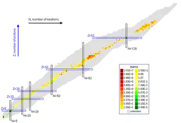 مخطط للنويدات يظهر قيم المقطع العرضي لالتقاط النيوترونات الحرارية.