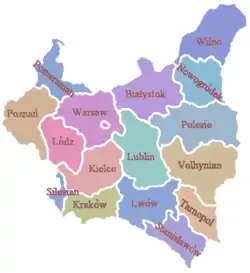 | البولندية voivodeships في interbellum </br> (البيانات حسب 1 أبريل 1937) | |||||