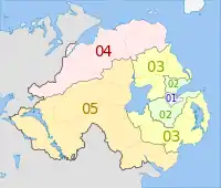 | UKN04 | الشمال | باليموني - Ballymoney كوليرين - Coleraine ديري - Derry ليمافادي - Limavady | |