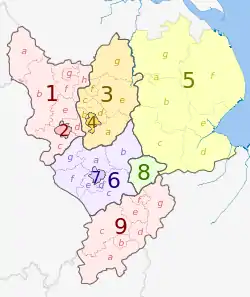| 10. مرزيسايد ♜ | a) Knowsley, b) Liverpool, c) St. Helens, d) Sefton, e) Wirral | ||