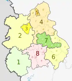 | الأقليم | المقاطعة التشريفية | المقاطعة الحضرية أو غير حضرية | ضواحي وبورو ومدن |