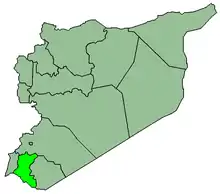 - مقاطعات سوريا (بالإنجليزية)، موقع الدراسات، 24 كانون الثاني 2011. نسخة محفوظة 18 يوليو 2017 على موقع واي باك مشين.